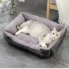Pat animale de companie, marime L, material pufos, 65x50x13 cm, negru si gri