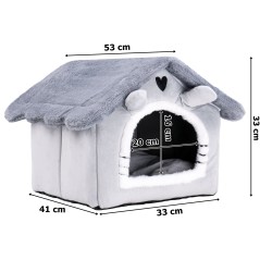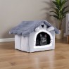 Casa din plus pentru pisici, perna detasabila, baza antiderapanta, acoperis retractabil, 41x33x53 cm