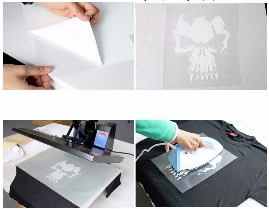 - daca alegeti sa o decupati la cutter plotter transferati doar forma dorita, sau daca va doriti un tricou interactiv puteti transfera intreaga folie A4 pentru ca mai apoi sa desenati pe ea diverse forme cu ajutorul unui breloc UV, acestea avand efect luminescent;