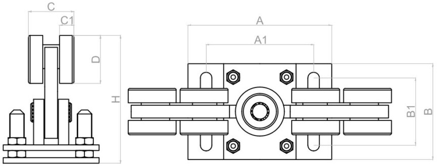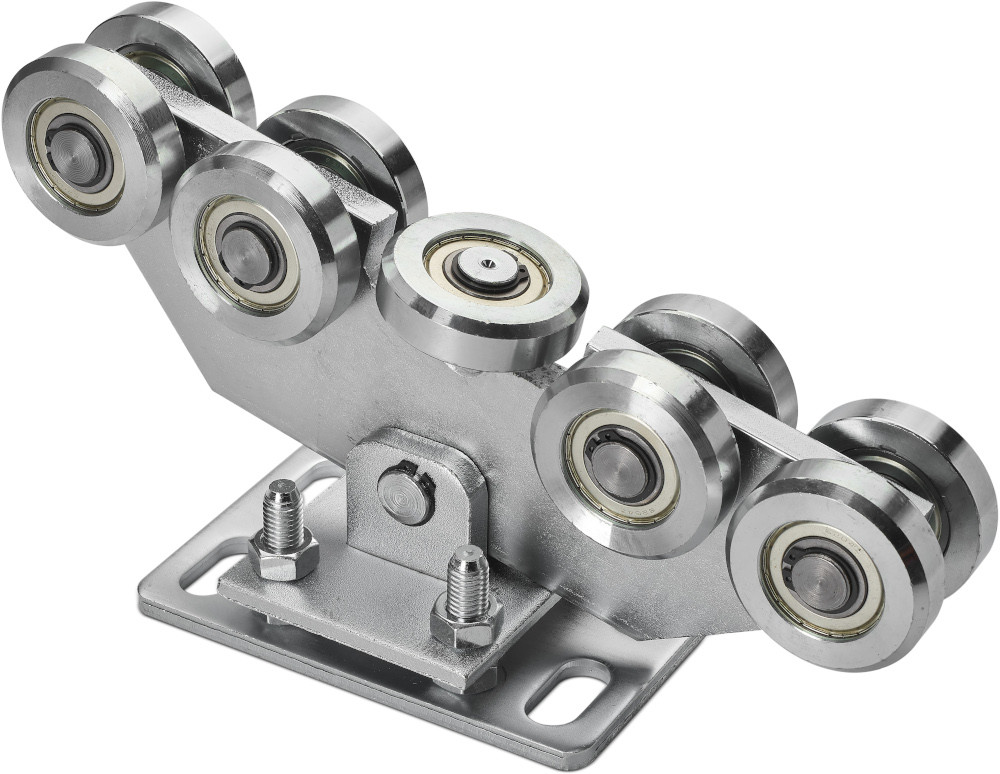 Carucior otel pentru poarta culisanta, 9 role, reglabil, sina 80x80x5 mm