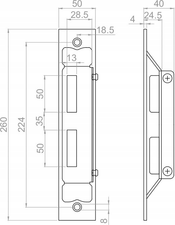 Se poate monta usor prin sudare sau insurubare, fiind compatibil atat cu profile plate, cat si cu cele rotunde. Ofera puncte de rezistenta suplimentare impotriva fortarii prin placile de maner, contribuind la securitatea generala a instalatiei.