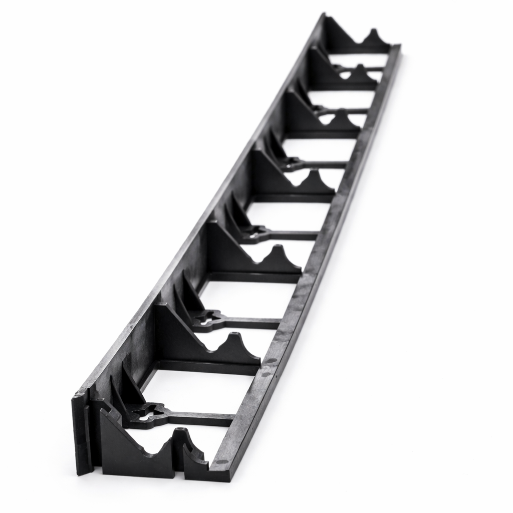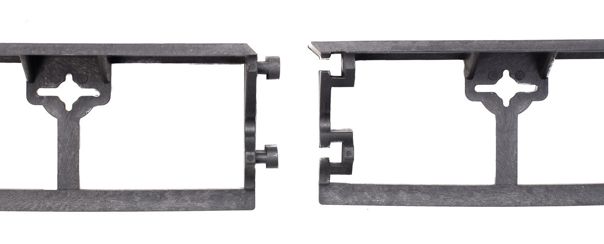 Separatorul are inaltimea de 4.5 cm si lungimea de 100 cm, este confectionat din plastic rezistent la raze UV, ceea ce asigura utilizarea pe termen lung. Acestea se pot prinde unele de altele prin cleme dispuse in capat.
