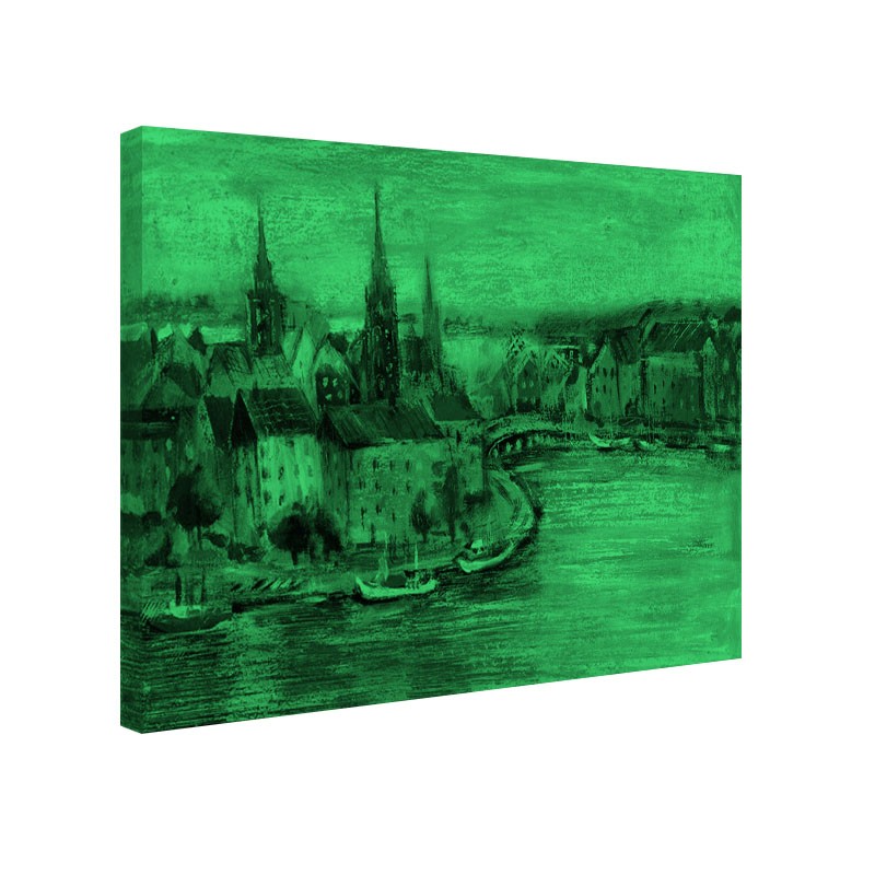 Tabloul fosforescent Peisaj urban este o imprimare de inalta rezolutie pe canvas profesional, avand proprietatea de a lumina in intuneric. In prezenta luminii naturale sau artificiale arata ca orice alt tablou obisnuit dar in intuneric imaginile imprimate devin vizibile dezvaluind imagini suprinzatoare. Cerneala folosita la imprimare este ecologica si nu contine plumb sau fosfor avand o mare putere de retinere-emitere de energie prin absorbtia luminii naturale sau artificiale.