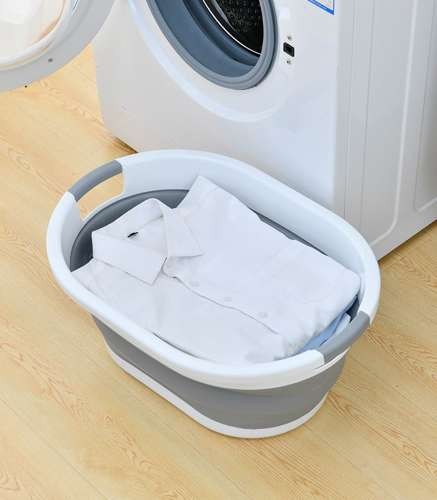 Cos de rufe pliabil, manere sustinere, 25L, 3 nivele inaltime, 38x53,5cm, alb/gri