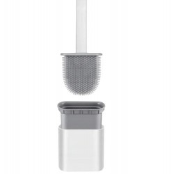 Set perie/suport wc, maner ergonomic, flexibila, adeziv prindere, silicon, 36x9,5x4cm, alb/gri