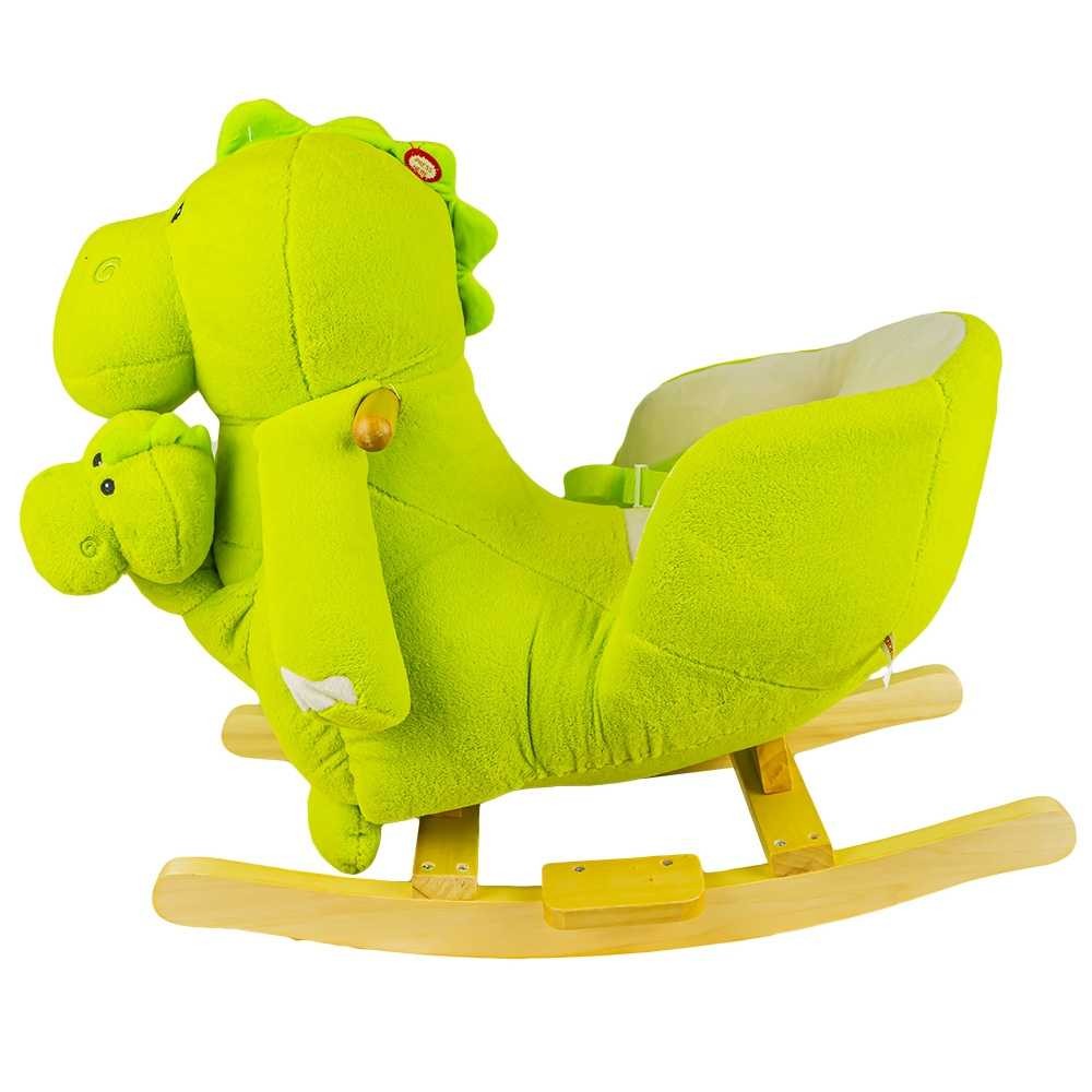 Balansoarul dinozaur, captiveaza usor atentia celui mic datorita design-ului atractiv si a materialui moale din care este conceput. Jucaria se balanseaza datorita miscarii inainte-inapoi a copilului. Acesta emite sunete muzicale captivante, printr-o sigura apasare a butonului situat pe creasta dinozaurului. Siguranta copilului este asigurata de centura de siguranta dar si de manerele din lemn. Balansoarul este indicat copiilor de peste 3 ani.