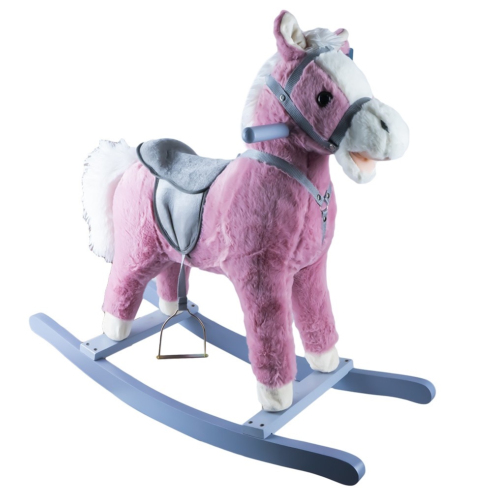 Scaunul balansoar este dotat cu sa, prevazuta cu suport pentru picioare, si pentru o mai buna stabilitate calutul este dotat cu 2 manere de care se poate tine. Cu o simpla apasare pe ureche reda sunete muzicale si emita trapul unui cal. Ceea ce ii va incatanta si mai mult pe cei mici este aspectul foarte realist al calutului. Inaltimea calutului este de 62 cm, avand o greutate de 2,07 kg si este recomandat doar copiilor de peste 3 ani.