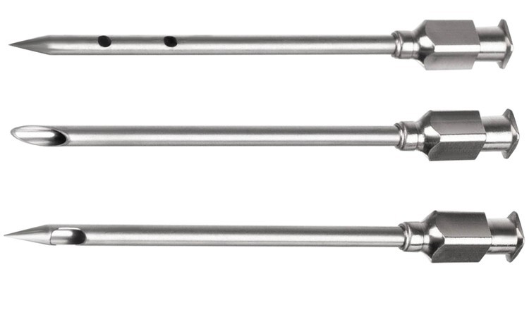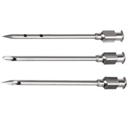 Acele si seringa pentru carne pot fi folosite cu succes de mai multe ori. Dupa terminarea lucrarilor trebuie doar sa le spalati si sa le uscati, iar acestea vor fi gata pentru urmatoarea utilizare. Fiecare ac este diferit: un ac cu 5 gauri care distribuie uniform condimentele, un ac cu doua orificii care este perfect pentru injectarea a marinadei care contine bucati mari de condimente, dar si un ac cu o singura gaura care este perfect pentru imprastierea locala a marinadei.