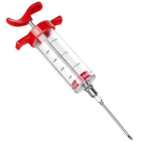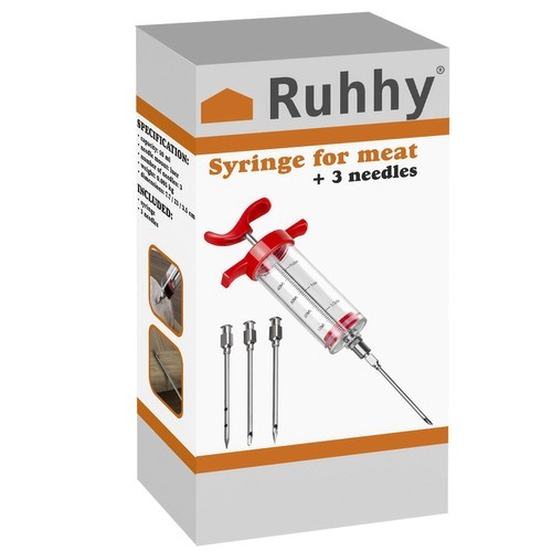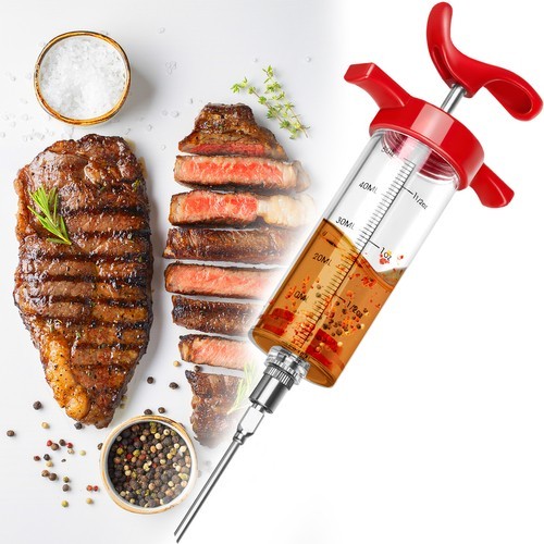 Seringa va permite sa injectati carnea cu saramura, ceea ce accelereaza intarirea acesteia si o face sarata uniform si, de asemenea, va permite sa condimentati carnea „din interior”. Seringa are o capacitate de pana la 50 ml, asa ca nu trebuie sa o reumpleti atat de des.