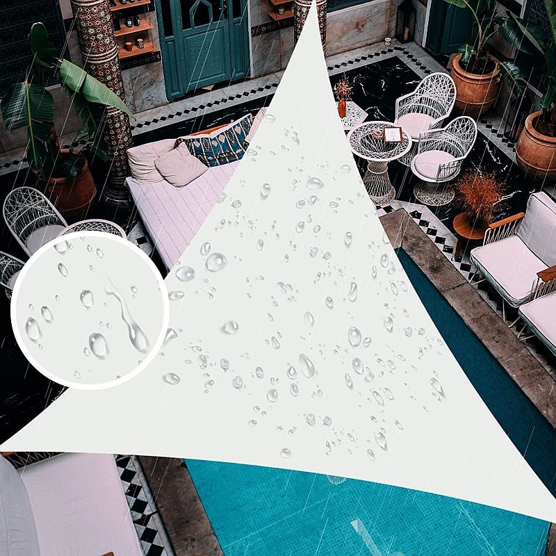 Este o solutie ideala pentru zilele calduroase, reduce temperatura si asigura circulatia aerului. Copertina are forma triunghiulara, dimensiunea de 4x4x4 m si este confectionata din HDPE (polietilena cu densitate mare), un material respirabil si impermeabil, fiind rezistenta la radiatii UV si apa, se curata si se usuca extrem de repede. Aceasta este prevazuta cu inele metalice de fixare, franghie de prindere de 5 m si include geanta de transport.