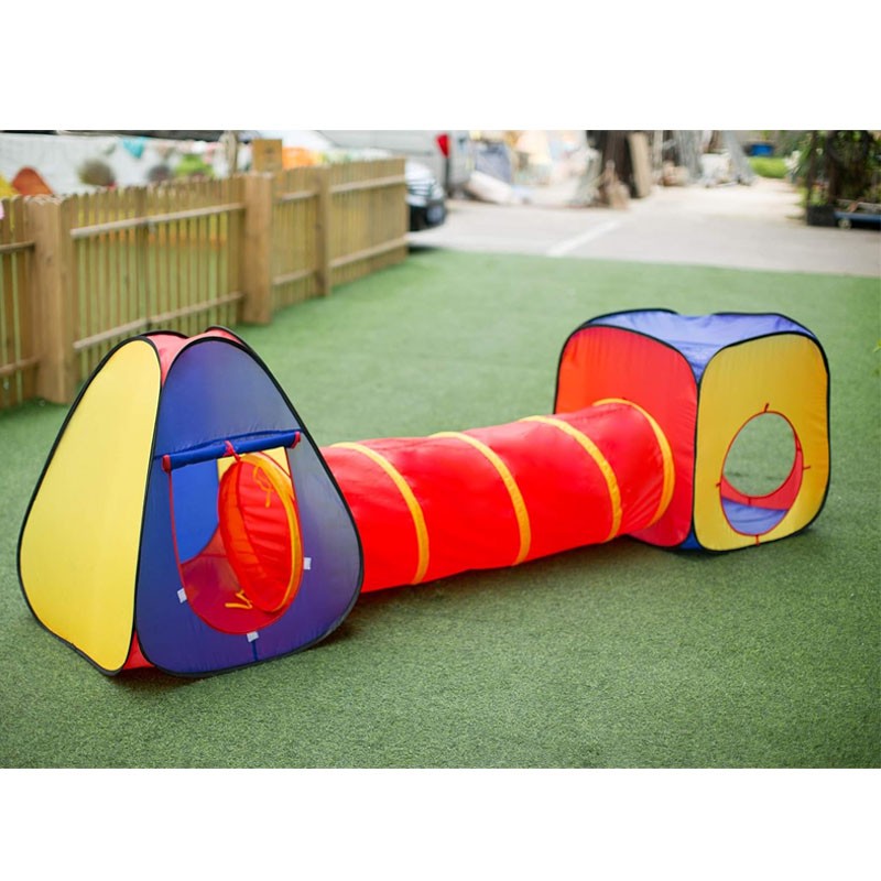 Transformati orice spatiu intr-un loc de joaca magic pentru cei mici cu acest cort de joaca 3 in 1, Ideal pentru activitati recreative atat in interior, cat si in exterior, acest set include un cort principal, un tunel de legatura si o piscina pentru bile (bilele nu sunt incluse), oferind ore intregi de distractie si aventura pentru copii.