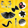 - Set complet 7 piese: fusta de tul, autocolante pentru fata, banda, bagheta, labele pisicii, coada, papion;