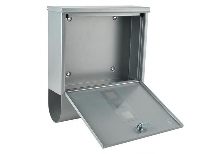 Cutia postala are un design modern, iar la baza acesteia se afla un orificiu special in care se pot pune ziare rulate, ziare publicitare sau pliante. Clapeta de acoperire se sprijina pe doua placute de cauciuc astfel incat chiar si atunci cand este lasata liber, nu provoaca zgomot excesiv si nu pune in pericol suprafata cutiei. Clapeta care se ridica usor are o margine special profilata care faciliteaza deschiderea acesteia. Orificiile de ventilatie permit aerului sa circule si autoevaporarea umiditatii excesive care se acumuleaza in mod natural si se aseaza pe peretii obiectelor inchise din exterior.