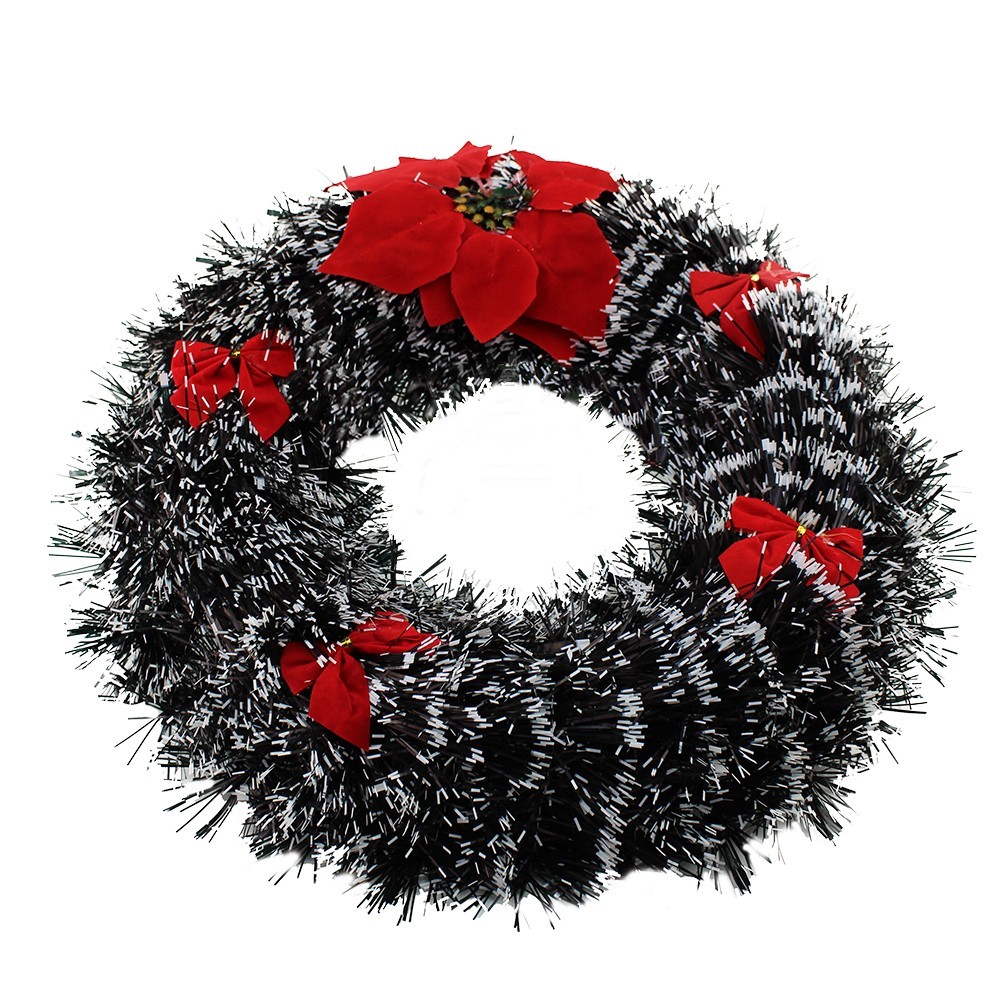 Decoratiune coronita artificiala, varfuri albe, fundite rosii, 38 cm