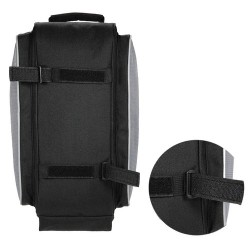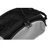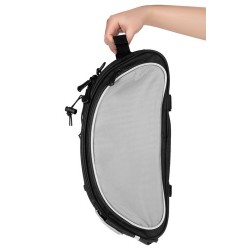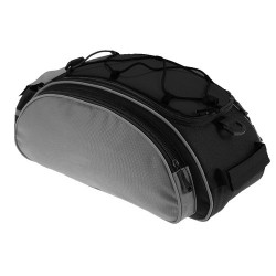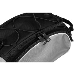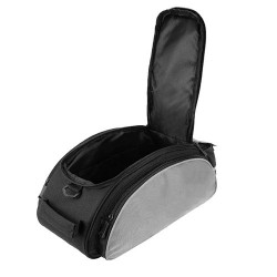 Se monteaza pe portbagajul bicicletei cu ajutorul bretelelor cu velcro. Geanta este compusa dintr-un compartiment spatios, 2 buzunare laterale suficient de incapatoare si un buzunar mai mic pentru telefonul mobil.