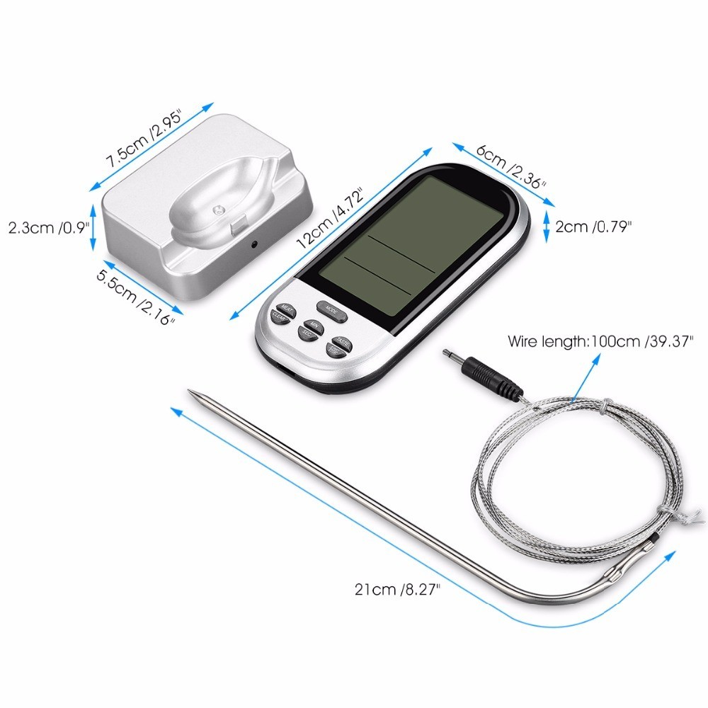 Termometru digital cu sonda pentru carne, Wireless, display LCD, LED, 8 butoane