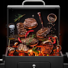 GrillMaster ProBend GM5000 este un gratar cu carbuni premium, proiectat pentru pasionatii de gatit in aer liber care isi doresc o experienta completa: de la controlul precis al temperaturii pana la depozitare eficienta si mobilitate. Construit din otel carbon durabil, acest gratar impresioneaza prin designul robust si functional, oferind o structura solida, durabila si adaptata gatitului in aer liber indiferent de sezon.