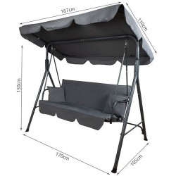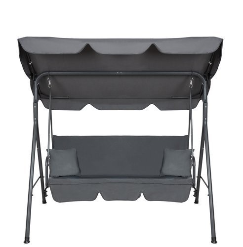 Leagan de gradina cu acoperis, 3 persoane, 2 perne incluse, rezistenta UV, 150x170x105 cm, gri