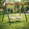 Suportul metalic dublu este proiectat pentru a oferi o sustinere sigura si durabila pentru doua leagane de exterior. Este o solutie sigura, fiind fabricat din otel acoperit cu pulbere, proiectat pentru a rezista la uzura si conditii meteorologice variate, pulberea prevenind coroziunea si rugina de la nivelul structurii.