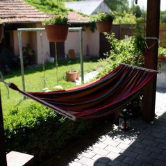 Datorita constructiei sale usoare si materialului compact, hamacul poate fi transportat cu usurinta, fiind potrivit pentru activitati in aer liber. Acesta are un design multicolor, care adauga un plus de veselie oricarui spatiu exterior.