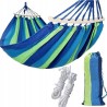 Hamac pentru 2 persoane, 150x200 cm, tija din lemn, greutate maxim suportata 200 kg, husa depozitare, grosime 300 g/mp, culoare verde/albastru