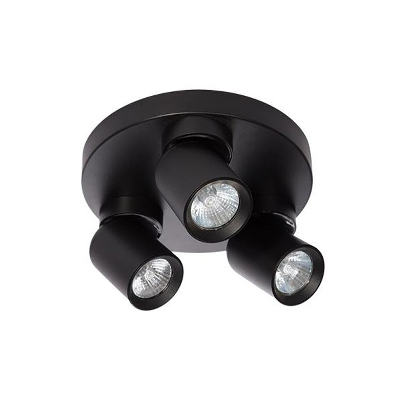 Plafoniera cu 3 spoturi reglabile, forma rotunda, 35W, IP20, negru mat