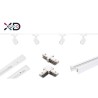Sistemul modern de iluminat format din doua sine cu lungime de 0,75 metri fiecare, si conectori tip I si L inclusi. Acest sistem ofera flexibilitate si versatilitate in iluminarea spatiului. Puteti monta sinele in forma dreapta sau puteti folosi conectorul in forma de L pentru a monta spre exemplu o sina pe tavan iar cealalta pe perete. Conectorii ofera libertate in amenajarea iluminatului in functie de design si cerinte.