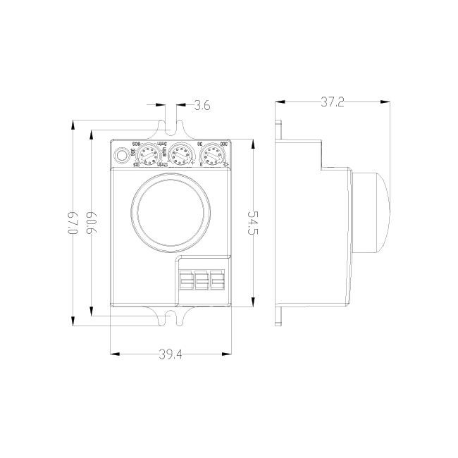 Carcasa este compacta, de culoare alba, cu dimensiuni de 37 x 54,5 x 39,5 mm, permitand o integrare discreta in orice ambient. Senzorul este usor de instalat si ofera o solutie moderna si eficienta pentru economisirea energiei si automatizarea iluminatului.