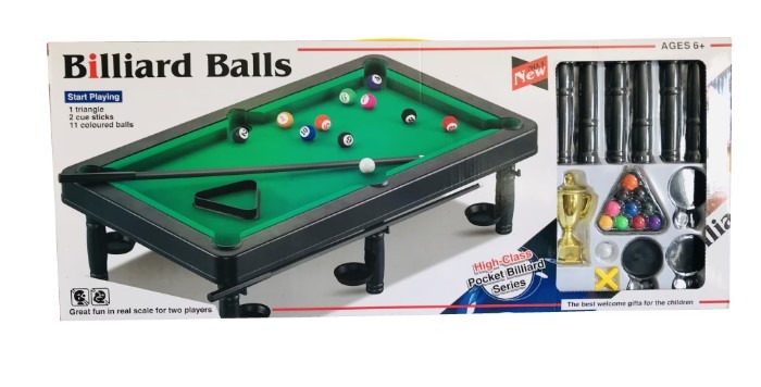 Jocul mini masa de biliard este o alegere excelenta pentru momentele de distractie in familie sau alaturi de prieteni. Potrivit pentru copiii cu varsta de 6 ani si peste, acest set ofera o introducere captivanta in lumea biliardului. Pachetul include o masa compacta, 2 tacuri, 10 bile colorate, o bila alba si un triunghi pentru aranjarea bilelor. Fabricat din material plastic durabil, jocul este usor si portabil, fiind ideal pentru utilizare acasa sau in deplasare.