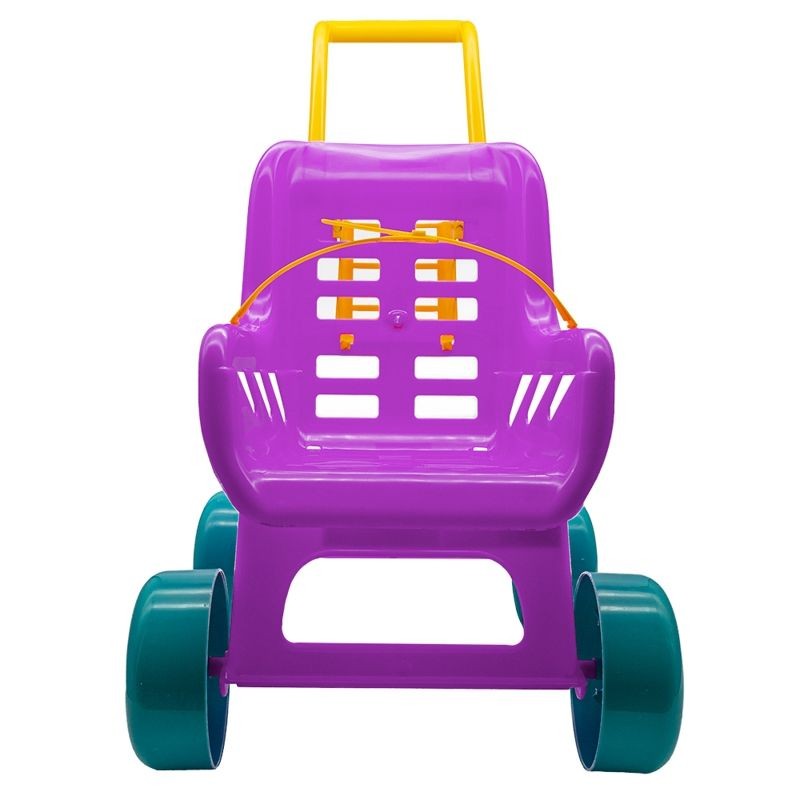 Acest carucior pentru papusi este prevazut cu o centura de siguranta si este confectionat din material plastic rezistent. Prevazut cu 4 roti de dimensiuni mari caruciorul are o stabilitate sporita. Este o jucarie ideala pentru copii de peste 2 ani.