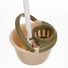 Printre cele 18 piese, setul contine o galeata colorata, perfect dimensionata pentru copii, usor de utilizat si transportat de catre cei mici, un mop corespunzator pentru manutele copiilor, o perie, matura, faras, sticlute pentru detergenti, bureti, etc.