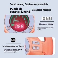 Volan interactiv cu suport si rotire la 360 grade, kilometraj digital, iluminare in 12 culori, muzica, roz