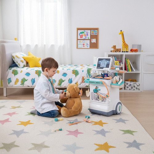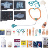 Copiii pot examina pacientii, pot asculta bataile inimii cu stetoscopul sau pot verifica temperatura cu termometrul reglabil. Fiecare instrument a fost conceput sa imite echipamentele reale, dar adaptate pentru siguranta si usurinta in utilizare.