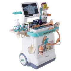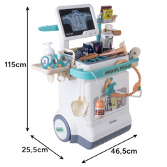 Statie medicala pentru copii, 26 piese, carucior cu ECG si radiografie, accesorii medicale, baterii, 115 x 25.5 x 46.5 cm