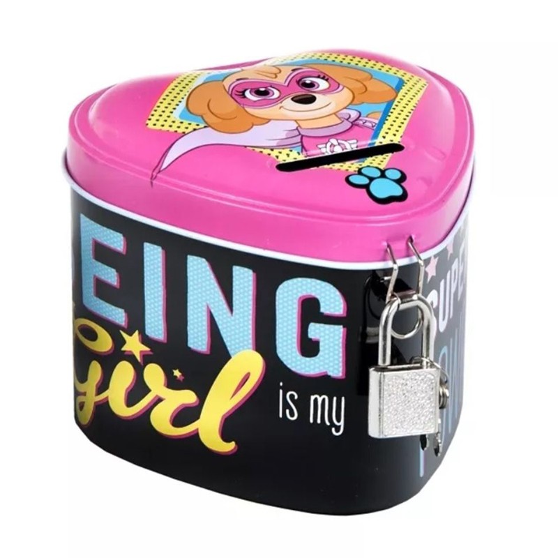 Pusculita Paw Patrol, metalica cu lacat, in forma de inimioara, 10 cm