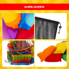 Fabricat din materiale sigure si durabile (PP si poliester), jocul respecta standardele europene de calitate, fiind potrivit pentru copii de toate varstele. Culorile vii stimuleaza atentia si incurajeaza miscarea activa, transformand joaca intr-o experienta plina de energie si voie buna.