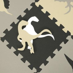 Elementele se imbina cu precizie, formand o suprafata stabila, sigura si antiderapanta, iar marginile si colturile incluse permit transformarea covorasului intr-un mic tarc de joaca cu laterale ridicate. Constructia usoara si posibilitatea de pliere faciliteaza transportul si depozitarea, fiind ideal pentru utilizarea acasa, in excursii sau in spatii dedicate copiilor. Designul colorat, cu motive de dinozauri, stimuleaza curiozitatea si creativitatea celor mici, ajutandu-i sa invete culorile si formele, dezvoltand totodata coordonarea mana-ochi.