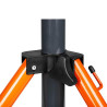 Designul in combinatia de culori portocaliu si gri nu doar ii confera un aspect modern, ci il face si usor de observat pe santiere sau in zone de lucru intens circulate, sporind siguranta utilizatorilor. Trepiedul este compact, usor de transportat si de instalat, putand fi pliat rapid pentru depozitare sau deplasare.