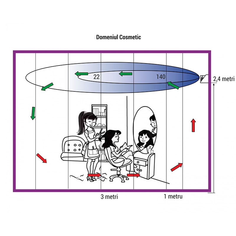 - directionarea fluxului de lumina UV-C permite eliminarea reflexiilor UV nedorite, date de unele obiecte din incapere;