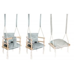Leagan copii, model 3 in 1, demontabil, textil si lemn, 34x34x26 cm, gri