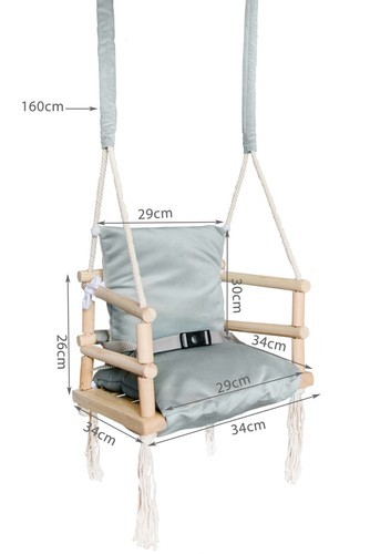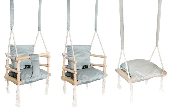 Leaganul are un design modern, este realizat cu atentie la fiecare mic detaliu. Materialul este moale, placut si delicat la atingere. Acesta este complet sigur pentru copil, marginile sunt rotunjite si totul este lustruit cu precizie. Aveti posibilitatea de a indeparta partile textile astfel incat sa puteti curata leaganul cu usurinta.