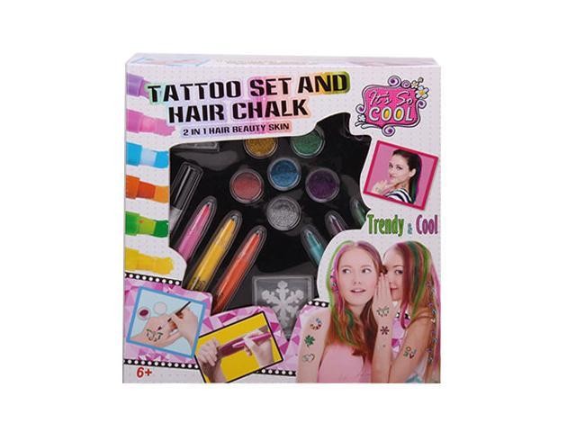 Un set bogat pentru a crea tatuaje colorate pentru copii si coafuri superbe si colorate. Perfect pentru o petrecere, va fi foarte distractiv pentru participantii mici!