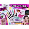 Setul contine 7 markere colorate pe baza de apa, fiecare marker avand un varf de creion pentru a putea desena modelele dorite, fara a fi nevoie sa indepartati culoarea de pe unghii cu ajutorul acetonei. Pe langa markere, kit-ul contine si o lampa pentru unghii, pila sub forma de inima, separatoare de picioare, pietricele decorative, diferse decoratiuni pentru unghii, sclipici si ace de stilou. Datorita elementelor multiple, fetita va putea decora unghiile surorilor, mamei sau a prietenelor, transformand casa itnr-un salon de infrumusetare.