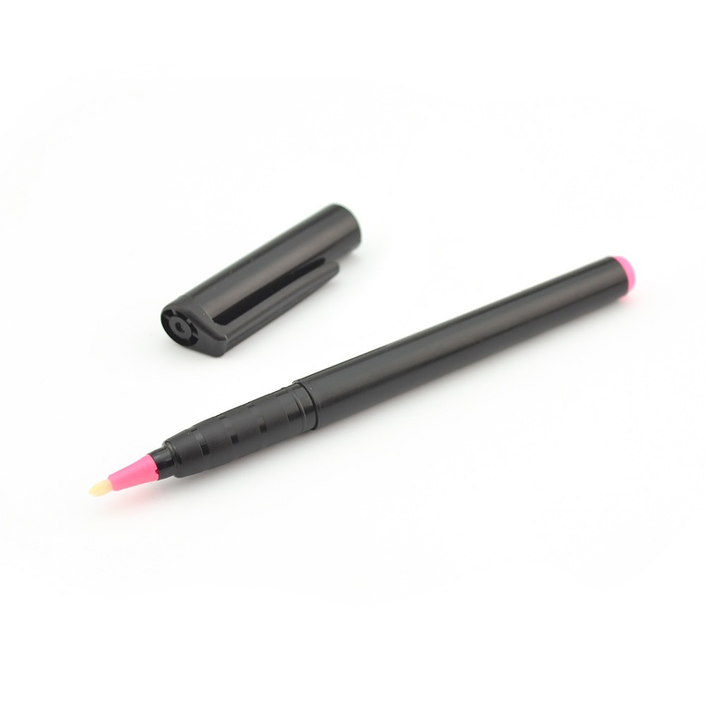 Invizibil la lumina normala scrisul sau insemnul efectuat de acest marker apare sub culoarea rosu fluorescent sub lumina UV. Se foloseste excelent cu oricare dintre sursele noastre de iluminat UV (brelocul uv, lampa uv, becul uv sau lanterna uv).