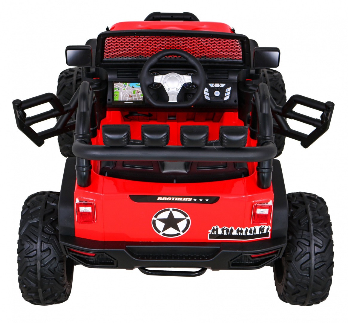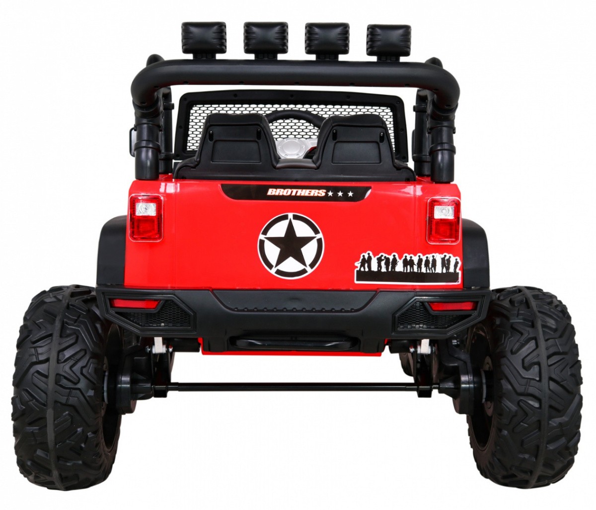 Masinuta electrica BROTHERS, 2 motoare, roti spuma EVA, 2 locuri, Bluetooth, rosu, 2 viteze