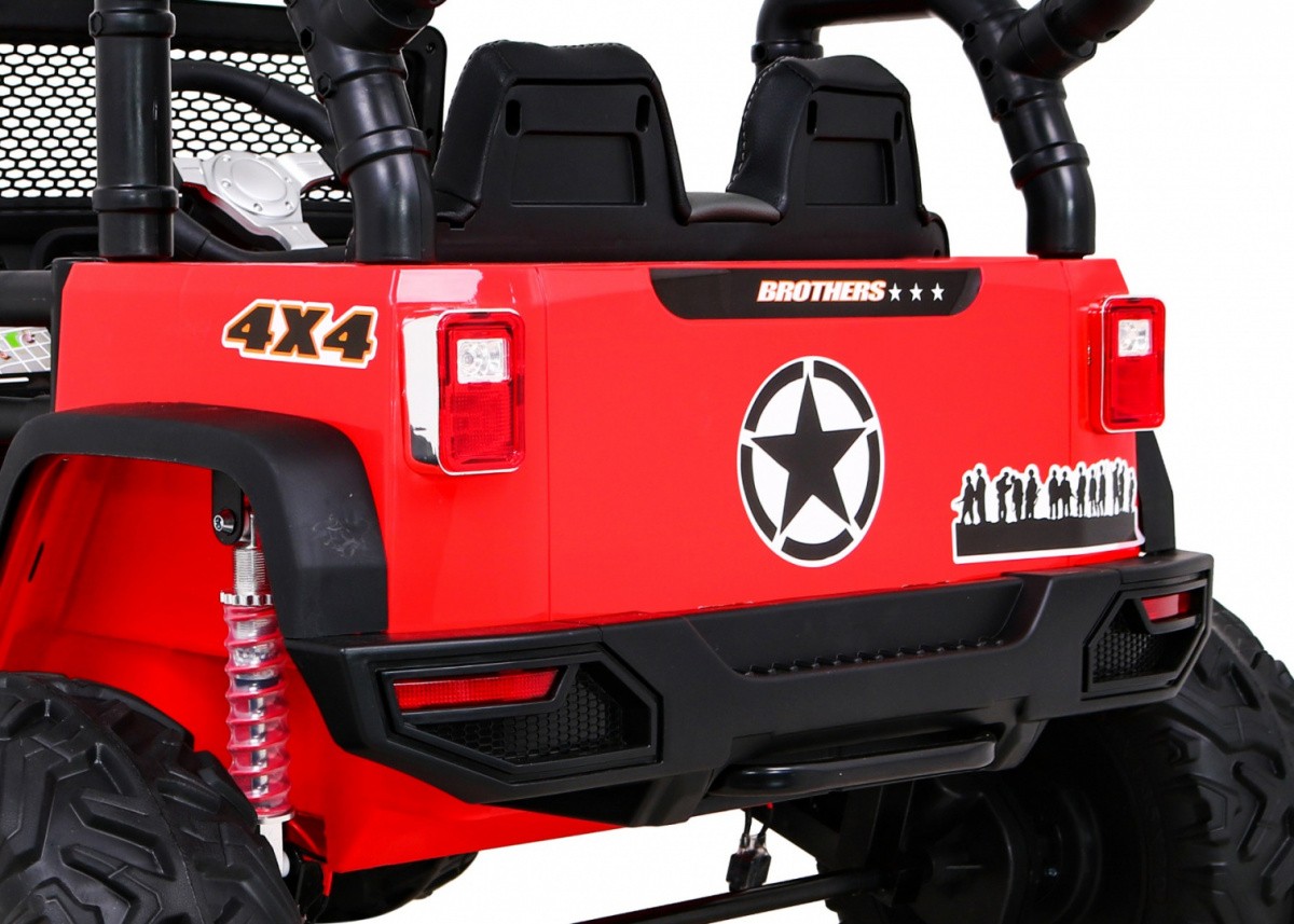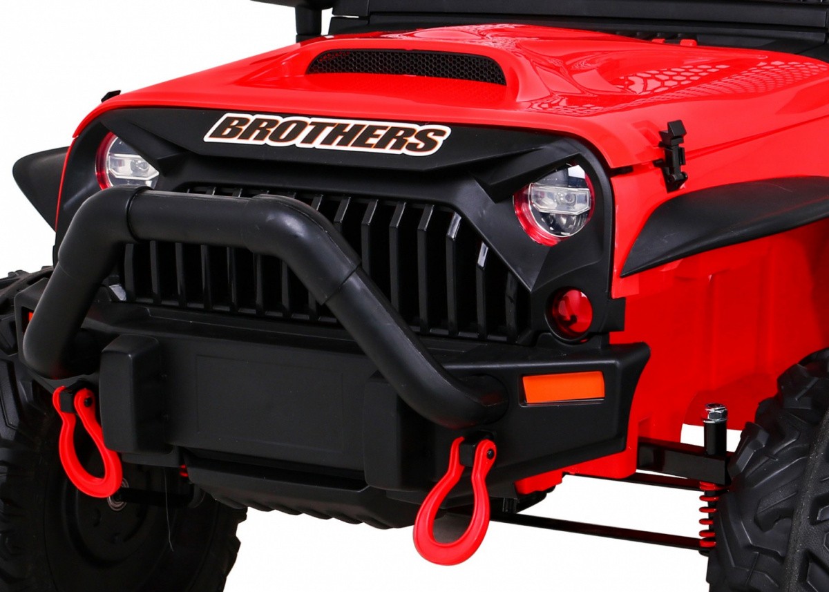 Masinuta electrica BROTHERS, 2 motoare, roti spuma EVA, 2 locuri, Bluetooth, rosu