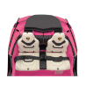 O caracteristica unica a acestei masinute este scaunul suplimentar pentru un parinte, ideal pentru a insoti copilul in deplasare, alaturi de suporturile de picioare retractabile pentru confort maxim. Sistemul de pornire lina, 3 viteze controlate de la telecomanda, treptele automate si functia de leagan adauga versatilitate si distractie. Rotile EVA de 25 cm cu amortizoare spate asigura o rulare silentioasa pe orice suprafata.