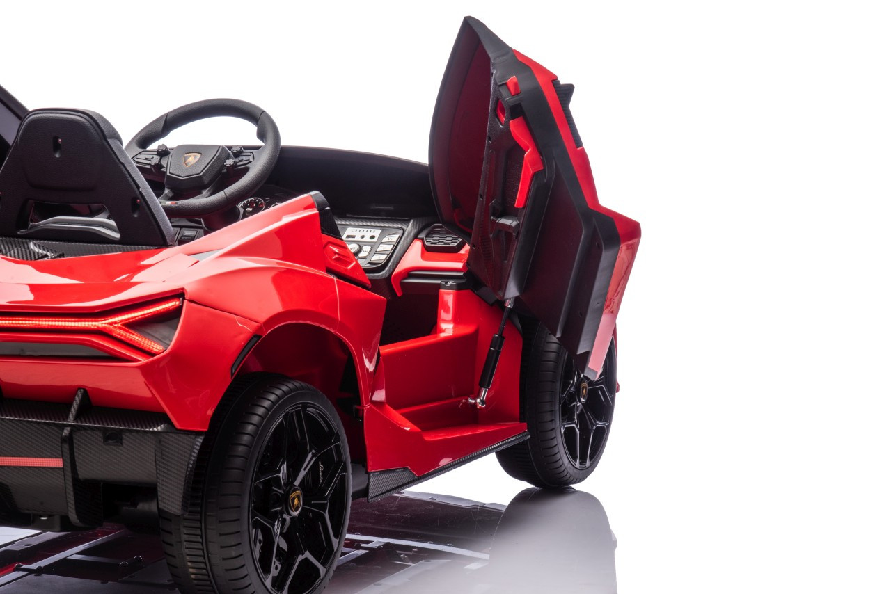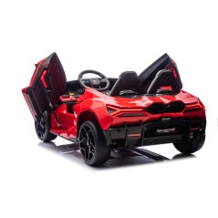 Masinuta electrica Lamborghini, 3 viteze, 200W, maxim 60 kg, roti gonflabile, lumini, AUX, Bluetooth, USB, rosie