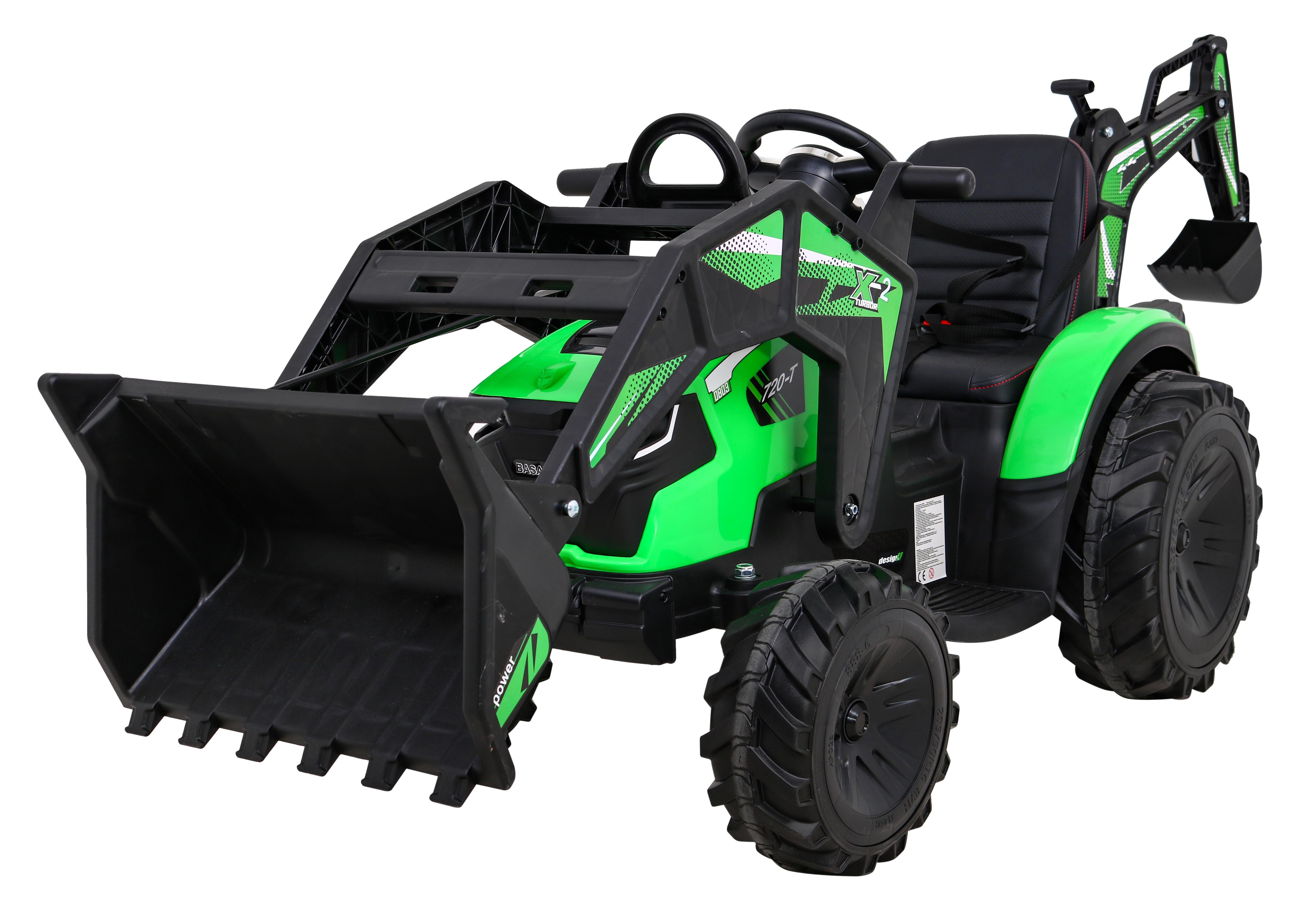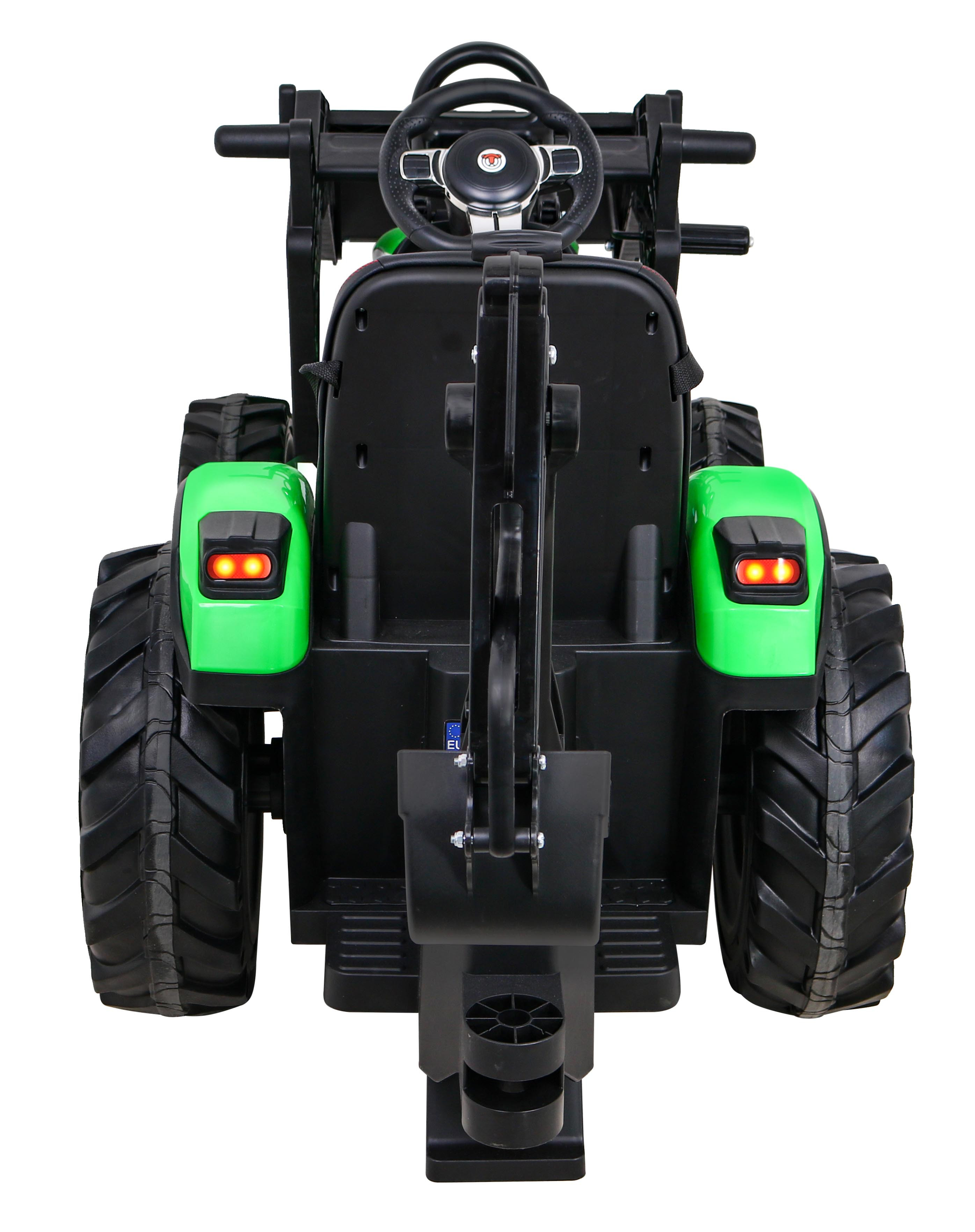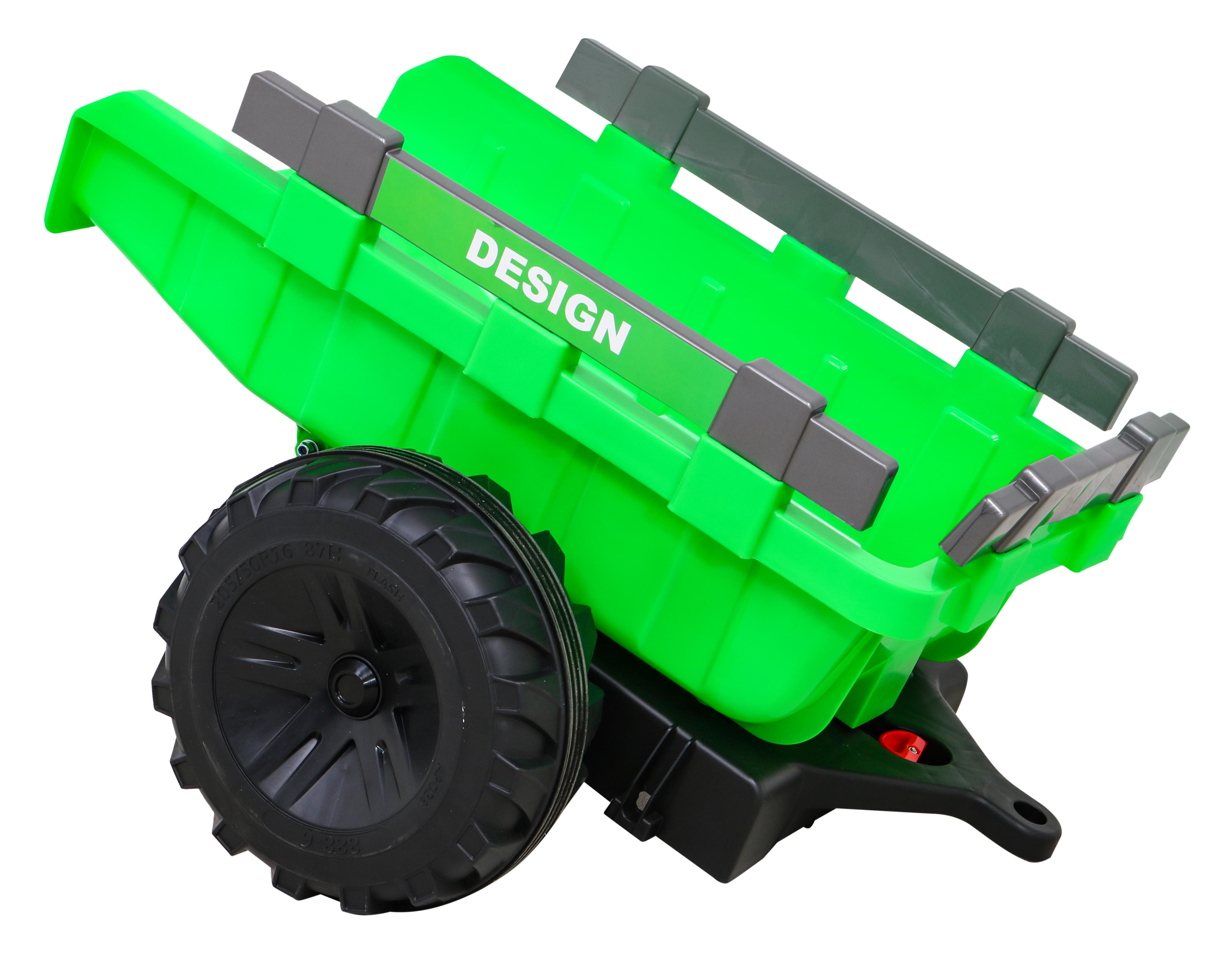Tractor cu remorca 720-T, 2x45W, baterie, 3 viteze, MP3, AUX, USB, telecomanda, faruri LED, verde