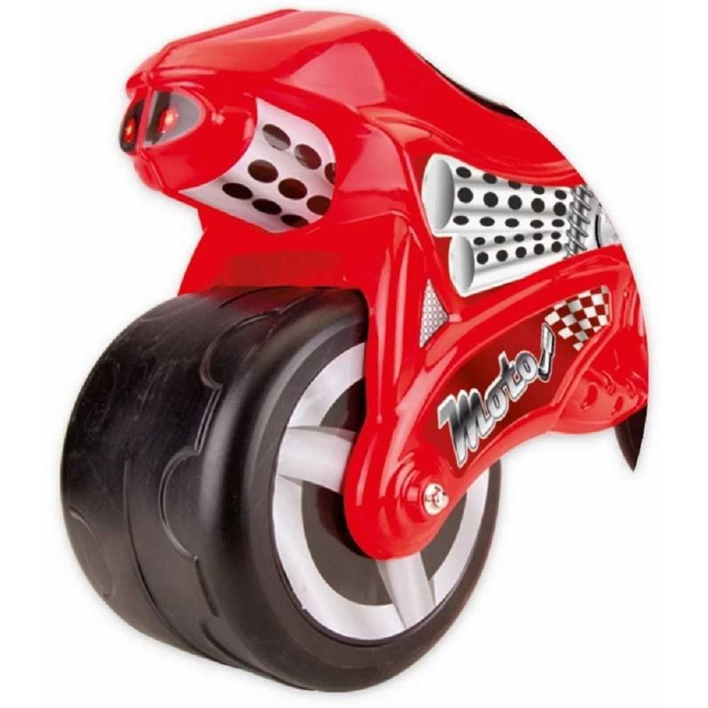 Motocicleta este confectionata din material plastic, de foarte buna calitate si nu dispune de pedale. Rotile motocicletei sunt late si din material tare, asigurand rezistenta in timp si stabilitatea. Se recomanda copiilor cu varsta peste 24 de luni.